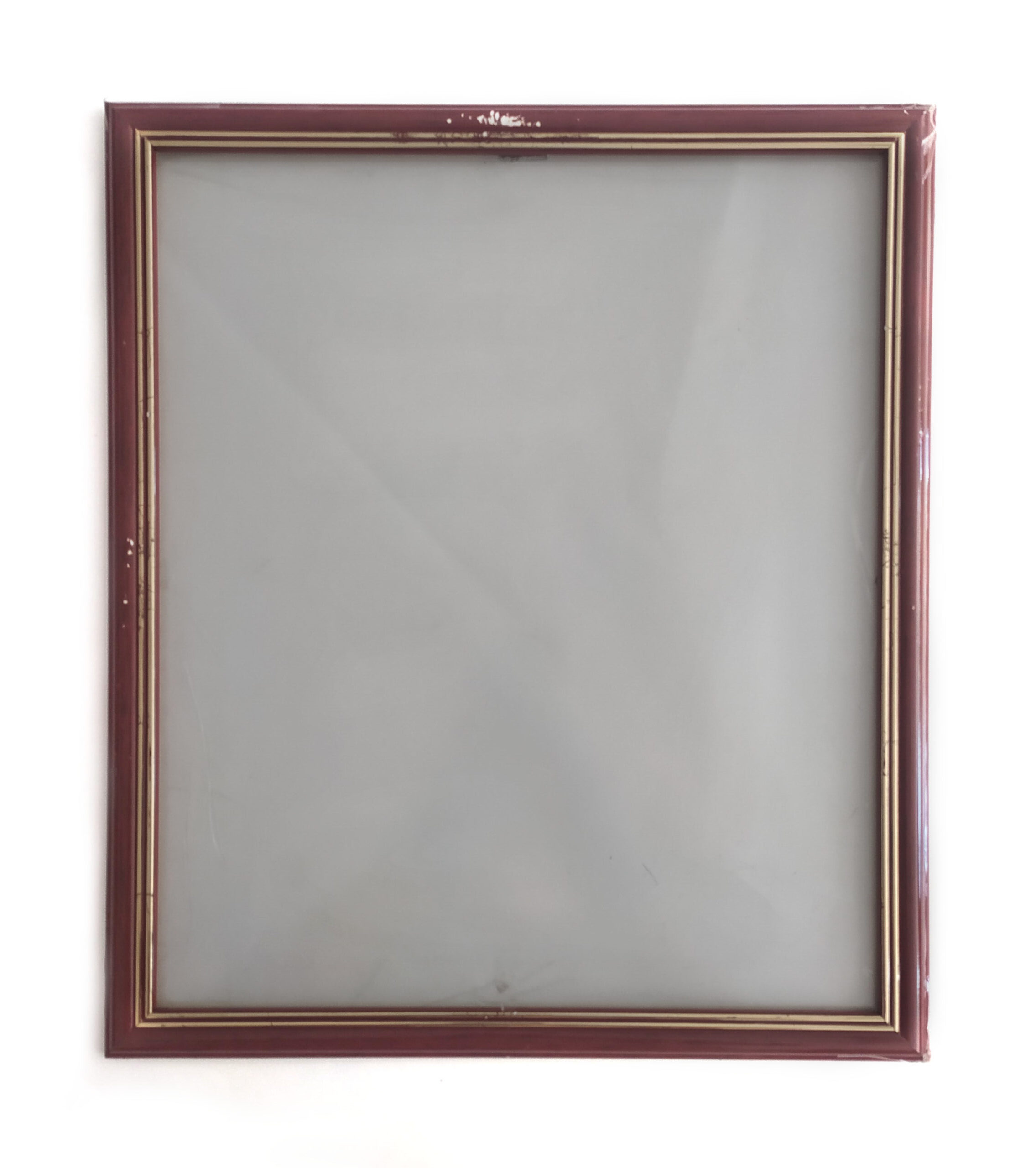 Moldura de madeira em formato retângular na co bordo com detalhes em dourado. Contém vidro e várias fitas para suporte. A moldura acompanhava Folha do Livro de conta corrente da Casa Pedro Chiuratto, referente a despesas com transporte para a medição de um imóvel denominado Araçatuba de Cima (hoje Colônia Castelhano), adquirido por Anselmo Vaccari em sociedade com Pedro Chiuratto.