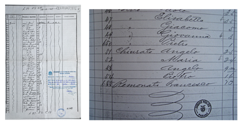 Registro de entrada da família Chiuratto: no Rio de Janeiro (Arquivo Nacional); no Paraná (Arquivo Público do Paraná)