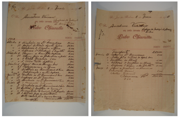 Despesas com a medição das terras de Araçatuba de Cima, da parte de Pedro Chiuratto. Esses documentos foram doados pelo autor ao Museu Atilio Rocco.