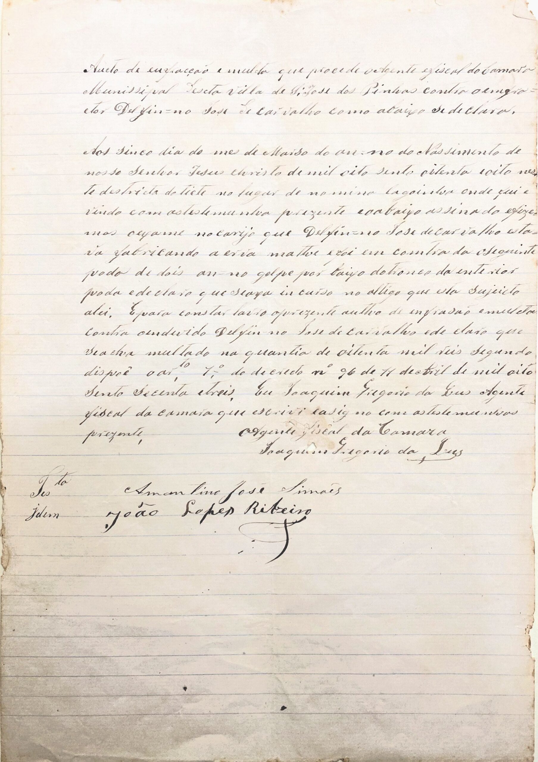 • Informa à Câmara Municipal infração cometida por Defino José de Carvalho no distrito do Tietê