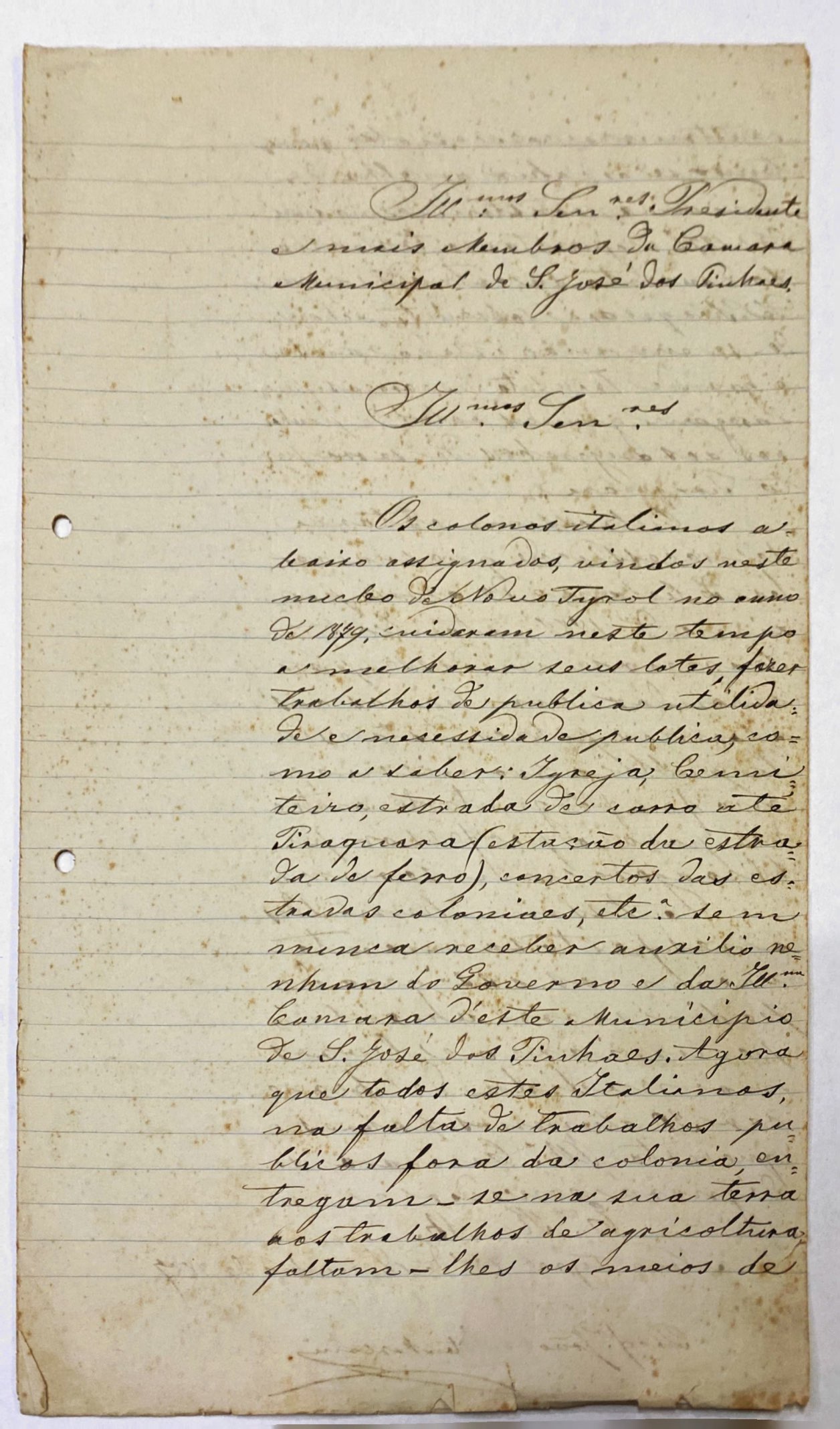 • Reclama à Câmara Municipal de São José dos Pinhais do mal estado da escola e da estrada da Colônia Novo Tyrol e solicita livros para os alunos pobres da mesma escola