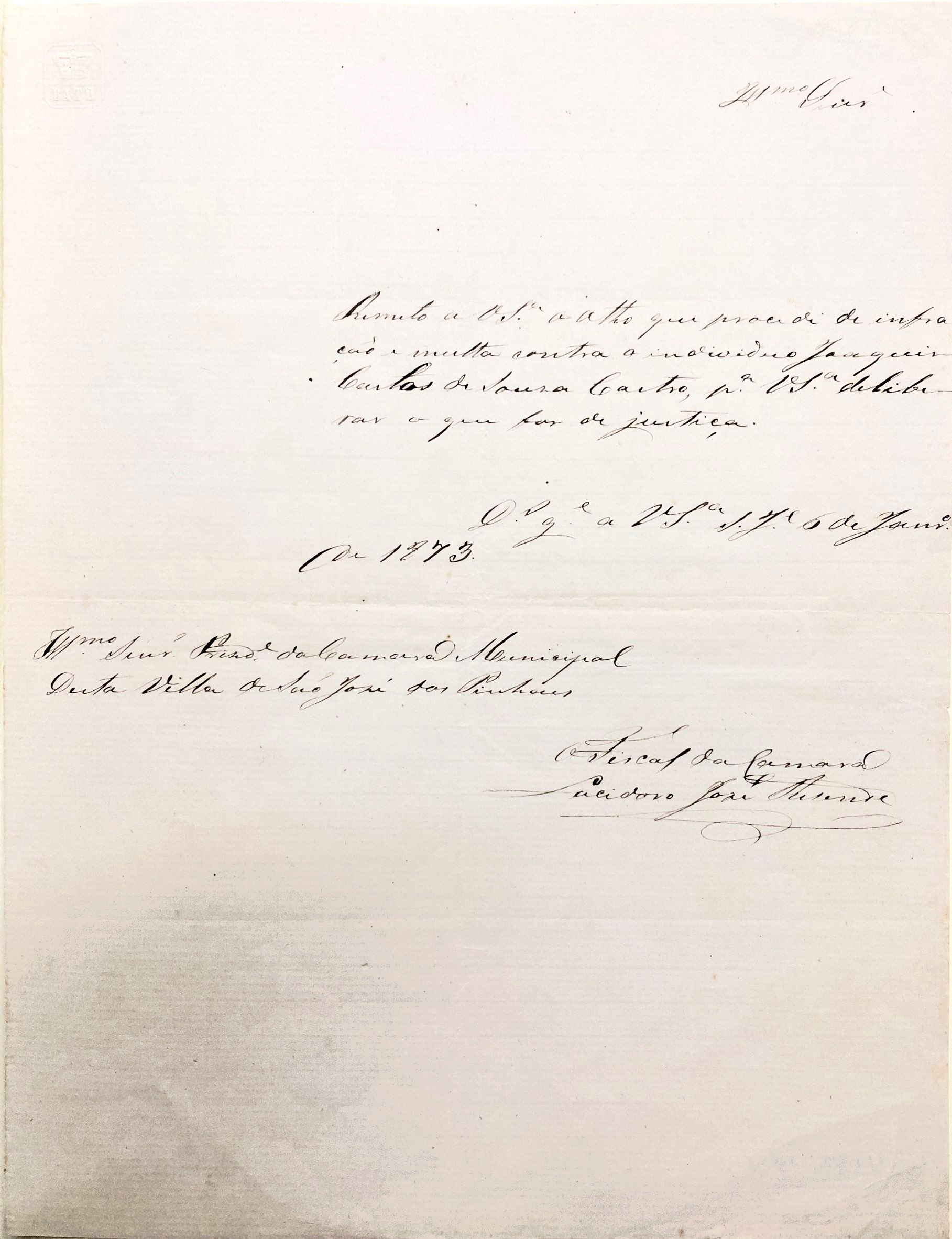• Remete à Câmara Municipal auto de infração para deliberação