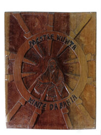 Arte em medeira Voltar 30 de março de 2023 by Museu Municipal Atílio Rocco Documento Baixar Anexos Detalhe com assinatura do artista Miniatura Compartilhe TítuloArte em medeiraDescriçãoQuadro em madeira feito pelo artista paranaense Edson Lapa, em homenagem ao Mestre Kunta Kinte. Continuar navegando Chapéu Berimbau Voltar para a lista de itens