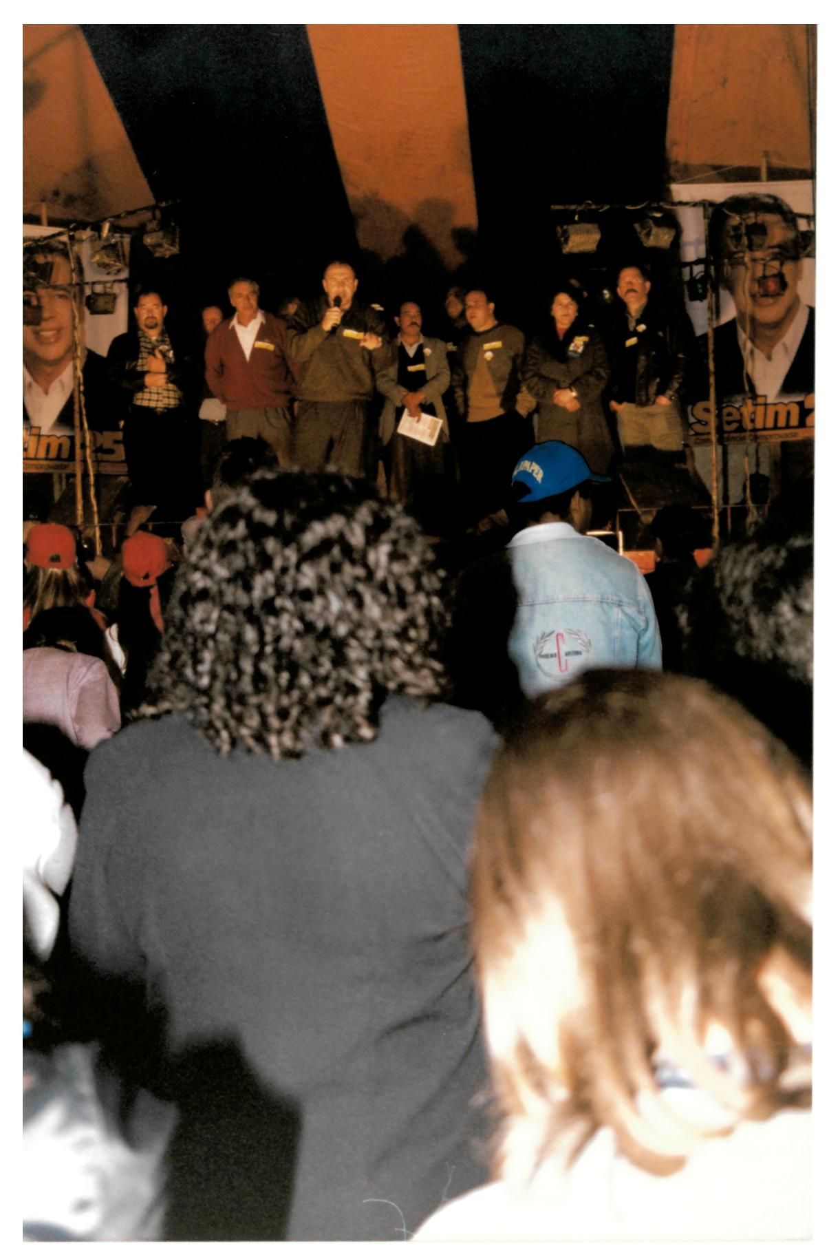 Francisco Bührer discursando para apoiadores Voltar 2 de agosto de 2023 by Museu Municipal Atílio Rocco Documento Baixar Miniatura Compartilhe Código ou título da ImagemFrancisco Bührer discursando para apoiadoresDescriçãoEx-vice prefeito Francisco Bührer discursando para apoiadores em um comício de campanhaAno da foto2000Origem/DoadorSecretaria Municipal de Comunicação de São José dos PinhaisCategoria6. Pessoas > 6.1 Grupos > 6.1.6 Fotos de Grupos ligados à Política Continuar navegando Carreata de campanha do ex-prefeito Luiz Carlos Setim Homem discursando em evento de campanha do Luiz Carlos Setim Voltar para a lista de itens