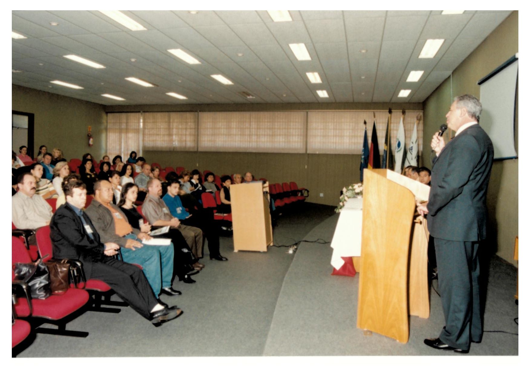 Luiz Carlos Setim fazendo palestra em Dia Mundial do Meio Ambiente, demais pessoas não identificadas. Descrição do verso da foto: Dia Mundial do Meio Ambiente, Secretaria do Meio Ambiente