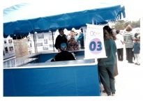 Luiz Carlos Setim em ação prefeitura no bairros com exposição de obras. Descrição do verso da imagem: Prefeitura Municipal de São José do Pinhais Departamento de Comunicação Social, Assessoria de Imprensa, Prefeitura nos bairros IV