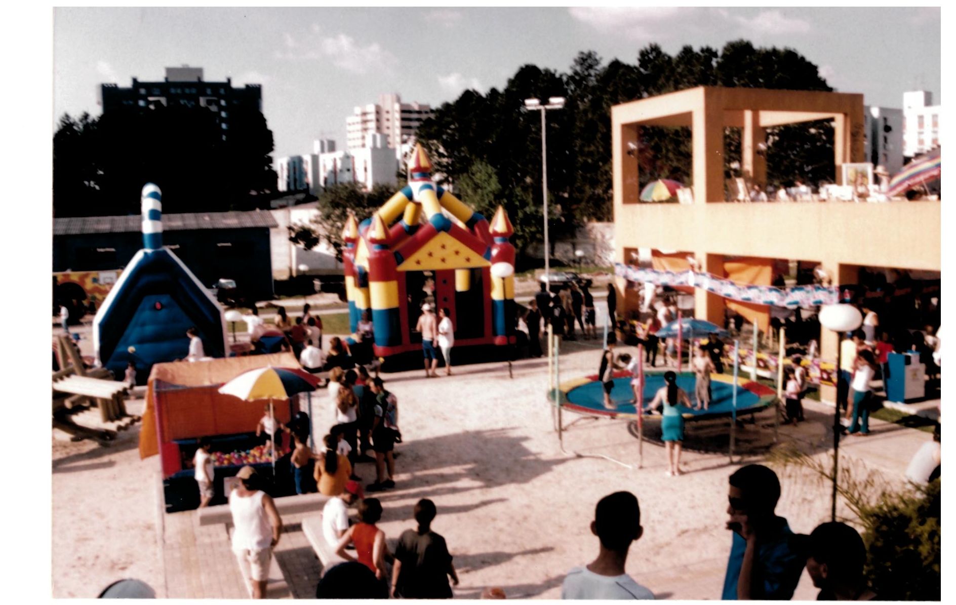Evento público, com brinquedos para crianças, na Praça do Verbo Divino. Descrição do verso da foto: Prefeitura de São José dos Pinhais - Domingo na Praça 09/01 Praça.Verbo Divino Sictur