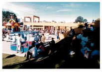 Evento público da Prefeitura de São José na Praça do Verbo Divino. Descrição do verso da imagem: Prefeitura de São José dos Pinhais Área da Comunicação Pç Verbo Divino Domingo na Praça 05/08/01 SICTUR; Rosane