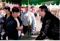 Ação com hortaliças nos bairros, pessoas da imagem não identificadas. Descrição do verso da foto: Prefeitura de São José dos Pinhais DPTO. Comunicação - Imprensa Prefeitura nos Bairros Jardim Maria Cecília e II Afonso Pena.