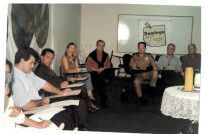 Reunião para discutir sobre o Domingo na Praça em São José dos Pinhais, pessoas da foto sem identificação. Descrição do verso da imagem: Domingo na Praça SICTUR