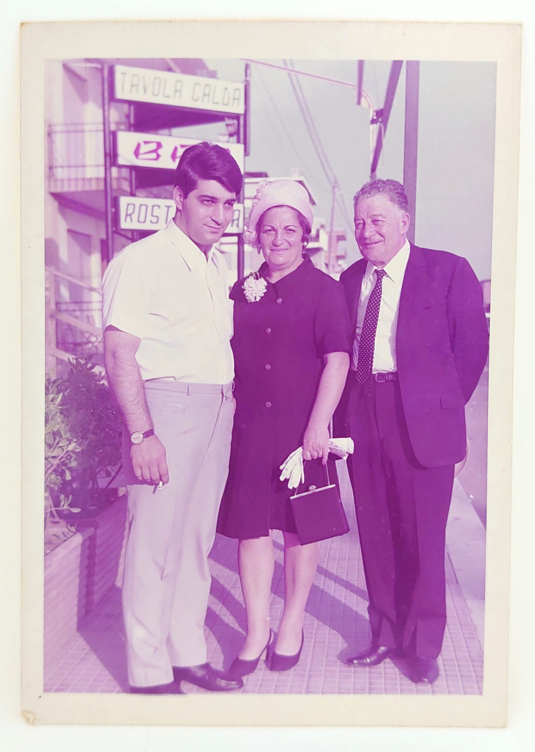 Retrato da familia Cosentino, parentes da família Zetola, por ocasião da Primeira Comunhão e Crisma do filho mais novo do casal Cosentino, Roberto, que não aparece na foto. Da esquerda para a direita: Gianni, Lillia e Fedele.