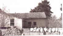 Construída em 1847 por Braz Luiz, pai do atual proprietário par comércio e residência. Utilizada desde 1957 como Escola Pública. Casa de comércio e moradia rural, um pavimento e sótão, construção de alvenaria de tijolo, divisórias de tabuado, cobertura em duas águas, telhas tipo capa-e-canal, assoalho de tábuas largas, possui mobiliário do início do século. Tijolos empilhados, cerca de madeira e casa de madeira ao fundo com um casal à sua porta. 27/07/1977